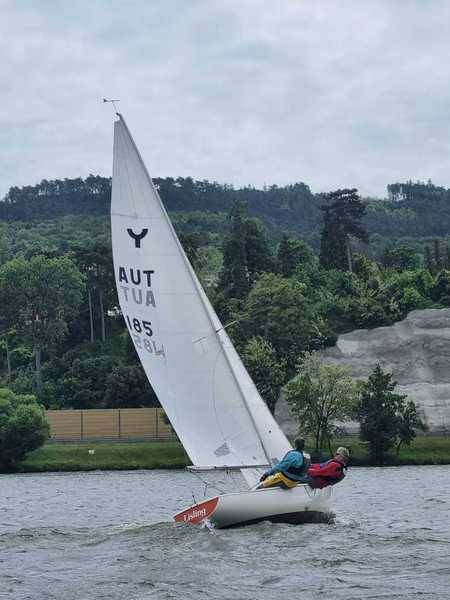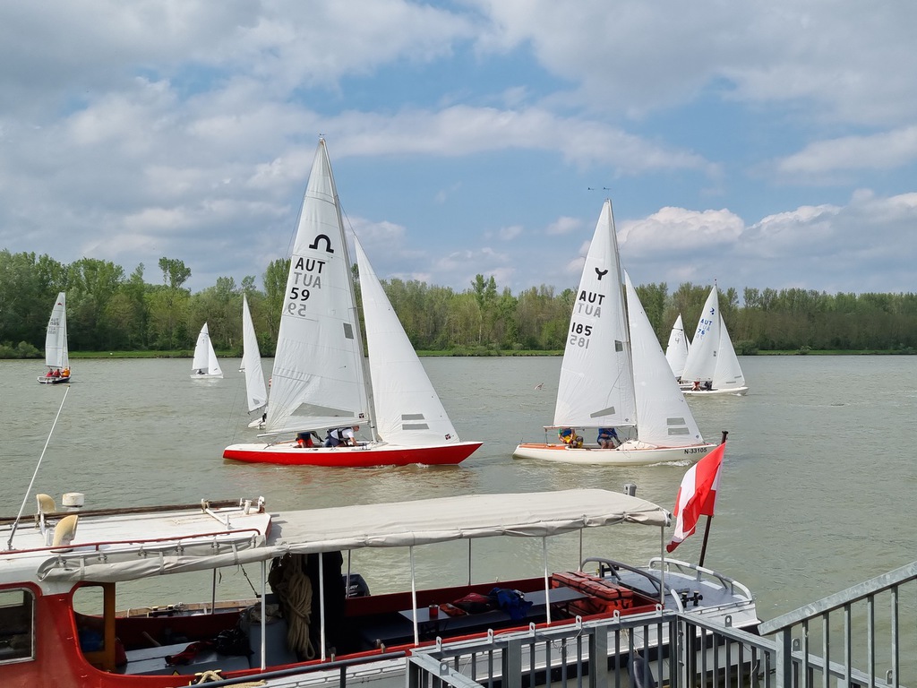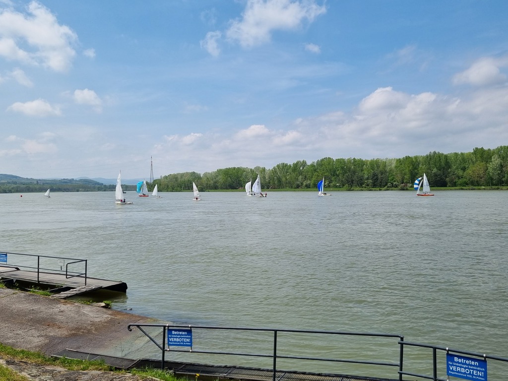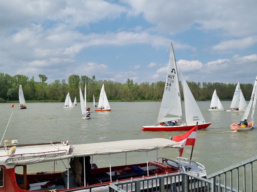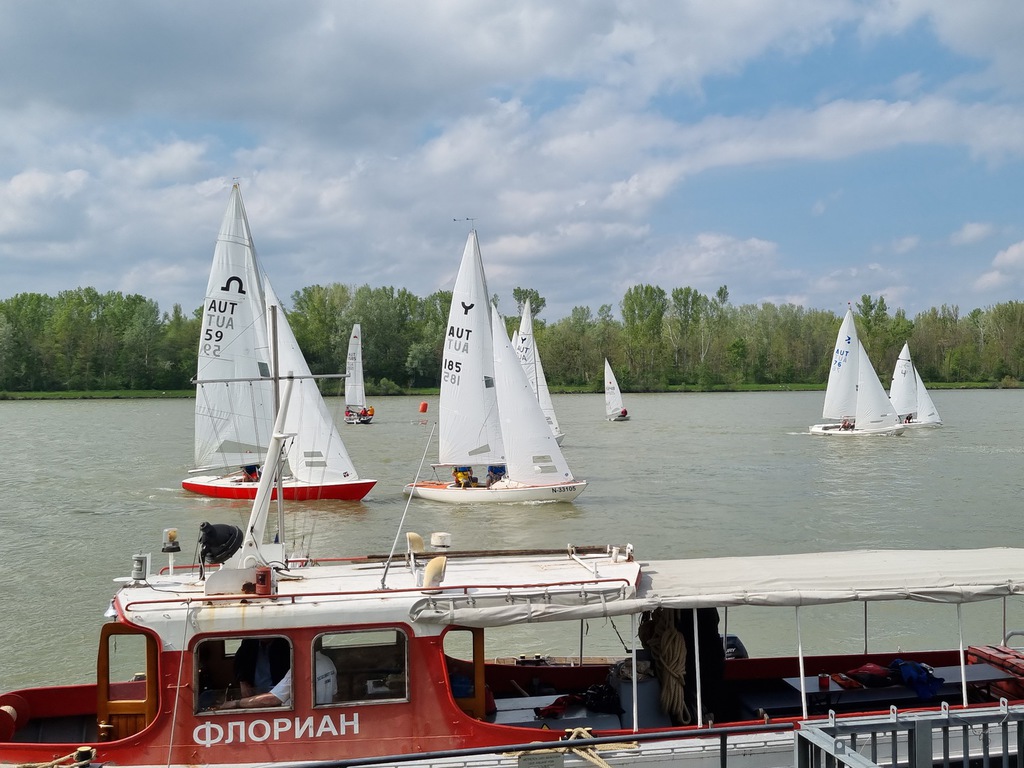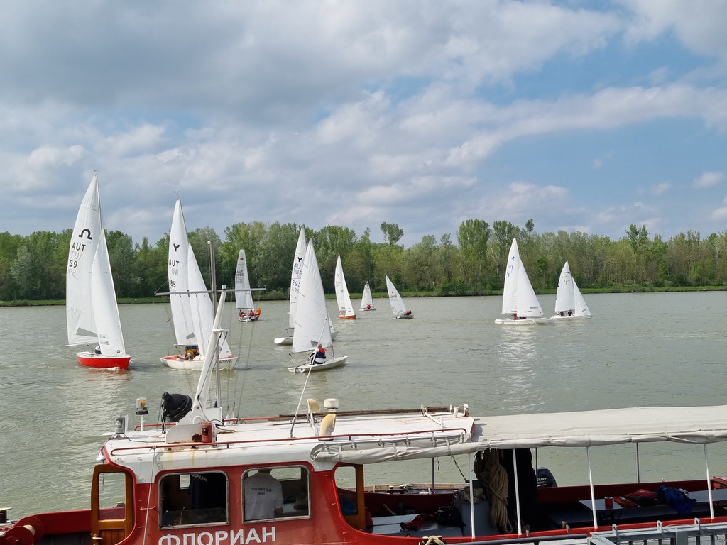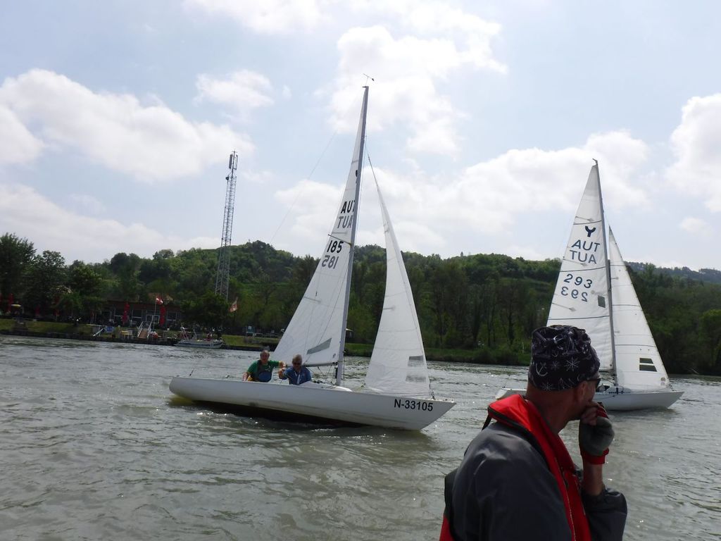 Nach 2 Jahren Regattapause bedingt durch Hochwasser der Donau 2013 sowie zu wenige Meldungen 2014 war es heuer wieder soweit. 11 Meldungen langten rechtzeitig vor Meldeschluss ein. Diese Regatta fand im Rahmen des NÖ- Donaupokales statt und die Wertung erfolgte nach Yardstick. Eine weitere Besonderheit an der Donau ist der Start mit einem Känguru-Start. Der Auftakt des Wochenendes begann bereits Freitagsabend mit dem traditionellen Heurigenbesuch. Das Wetter am Samstag brachte Sonnenschein und Temperaturen um 30 Grad Celsius, der Wind wehte mit ca. 1-2 Bft. aus NO drehend. Der Start zur ersten Wettfahrt erfolgte ca. 14:30 Uhr. Aufgrund der schwachen Windverhältnisse und der leichten Strömung war eine zweite Wettfahrt an diesem Tag nicht mehr möglich, Tagessieger wurde AUT 77 Roland Deissenberger mit Thomas Eisner. Bei dieser Regatta feierte der Yes St.Pölten am Samstagabend sein 50 Jähriges Clubbestehen. Ein reichhaltiges Buffet, div. Getränke und Livemusik sorgten bald für gute Stimmung. Es wurde ein gemütlicher Abend bei angenehmen Temperaturen auf der Clubterrasse. Das Wetter für den Sonntag war ähnlich wie Samstag, der Wind wehte mit 3-4 Bft. und in den Böen mit 5 Bft. aus SO drehend. Start zur 2. Wettfahrt um ca. 10:30 Uhr, am Sonntag konnte 3 Wettfahrten bei gleichbleibenden Windverhältnissen gesegelt werden. AUT 77 Roland Deissenberger mit Vorschoter Thomas Eisner verteidigte souverän am Sonntag seinen Platz und konnte den Gesamtsieg erlangen. Den 2.Platz erreichte Punktegleich mit dem Erstplatzierten Altmeister GER 4139 Heinrich Bösl/Josef Knapp. Der 3. Platz ging an AUT 6 R.Leitner/F.J. Schild.
