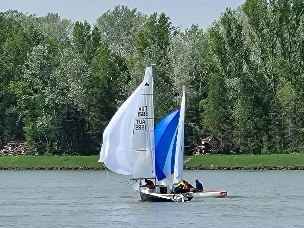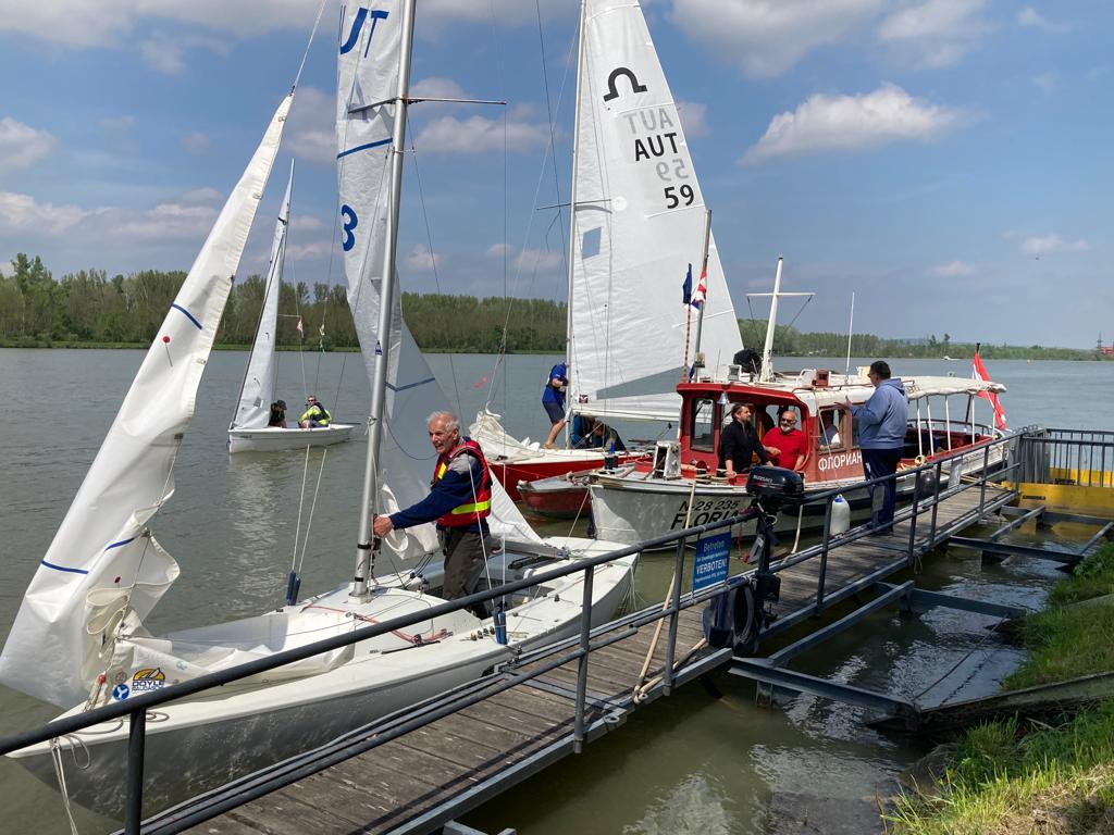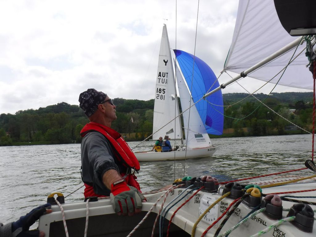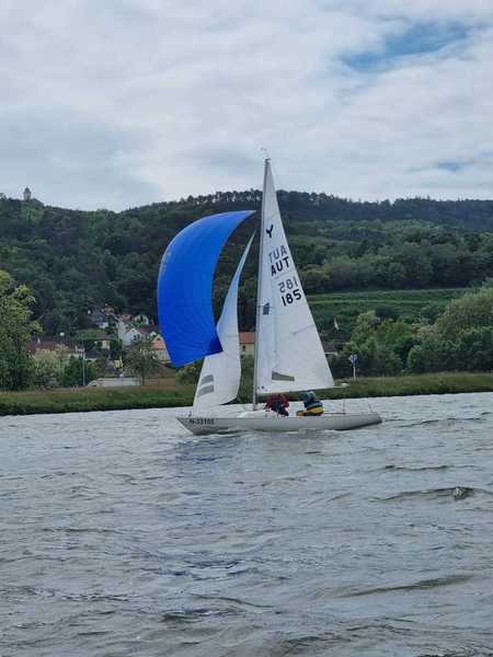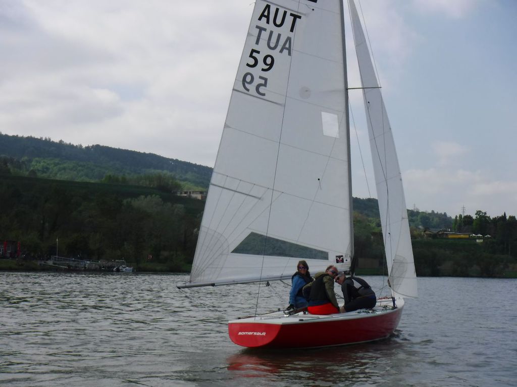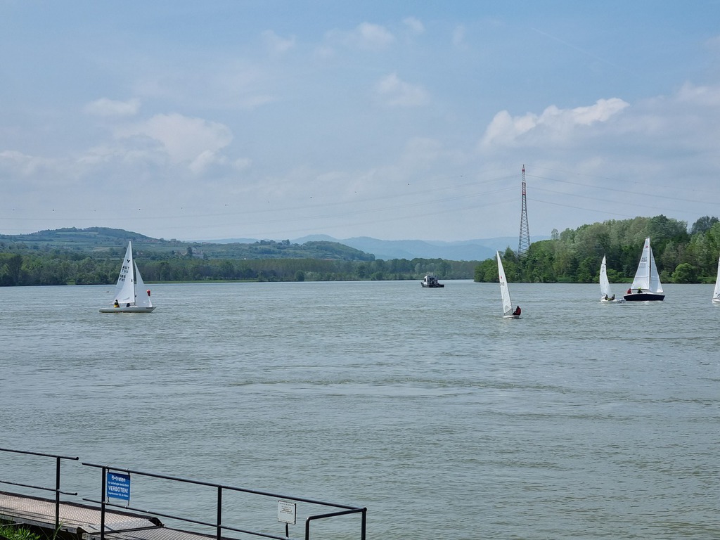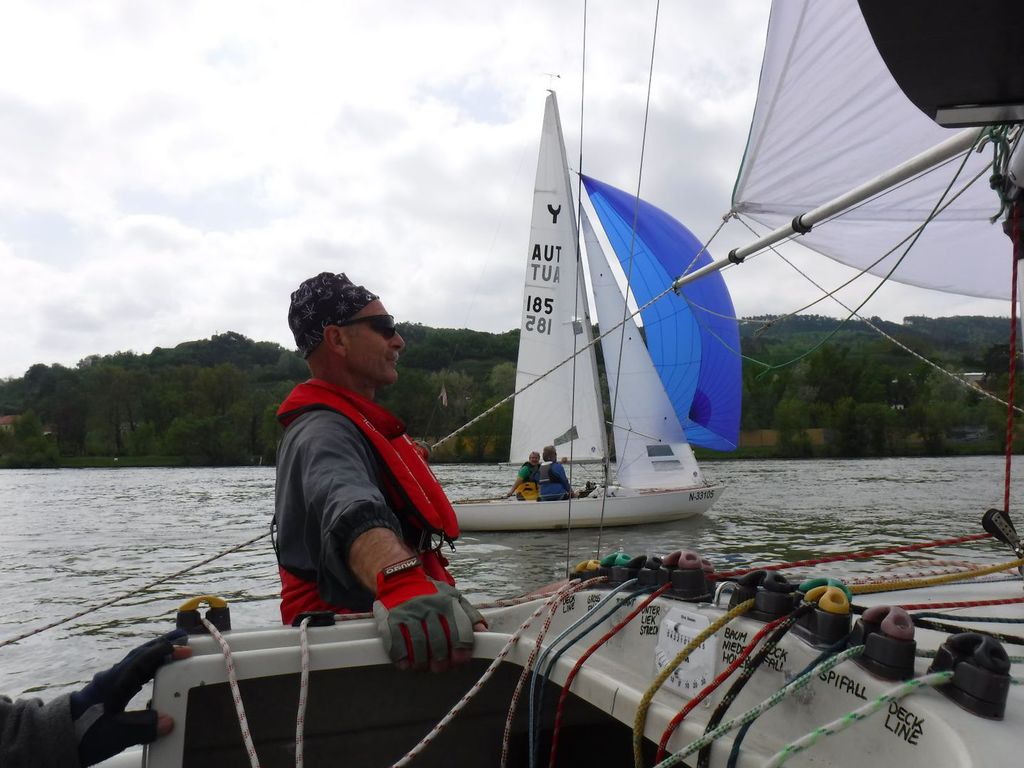Nach 2 Jahren Regattapause bedingt durch Hochwasser der Donau 2013 sowie zu wenige Meldungen 2014 war es heuer wieder soweit. 11 Meldungen langten rechtzeitig vor Meldeschluss ein. Diese Regatta fand im Rahmen des NÖ- Donaupokales statt und die Wertung erfolgte nach Yardstick. Eine weitere Besonderheit an der Donau ist der Start mit einem Känguru-Start. Der Auftakt des Wochenendes begann bereits Freitagsabend mit dem traditionellen Heurigenbesuch. Das Wetter am Samstag brachte Sonnenschein und Temperaturen um 30 Grad Celsius, der Wind wehte mit ca. 1-2 Bft. aus NO drehend. Der Start zur ersten Wettfahrt erfolgte ca. 14:30 Uhr. Aufgrund der schwachen Windverhältnisse und der leichten Strömung war eine zweite Wettfahrt an diesem Tag nicht mehr möglich, Tagessieger wurde AUT 77 Roland Deissenberger mit Thomas Eisner. Bei dieser Regatta feierte der Yes St.Pölten am Samstagabend sein 50 Jähriges Clubbestehen. Ein reichhaltiges Buffet, div. Getränke und Livemusik sorgten bald für gute Stimmung. Es wurde ein gemütlicher Abend bei angenehmen Temperaturen auf der Clubterrasse. Das Wetter für den Sonntag war ähnlich wie Samstag, der Wind wehte mit 3-4 Bft. und in den Böen mit 5 Bft. aus SO drehend. Start zur 2. Wettfahrt um ca. 10:30 Uhr, am Sonntag konnte 3 Wettfahrten bei gleichbleibenden Windverhältnissen gesegelt werden. AUT 77 Roland Deissenberger mit Vorschoter Thomas Eisner verteidigte souverän am Sonntag seinen Platz und konnte den Gesamtsieg erlangen. Den 2.Platz erreichte Punktegleich mit dem Erstplatzierten Altmeister GER 4139 Heinrich Bösl/Josef Knapp. Der 3. Platz ging an AUT 6 R.Leitner/F.J. Schild.