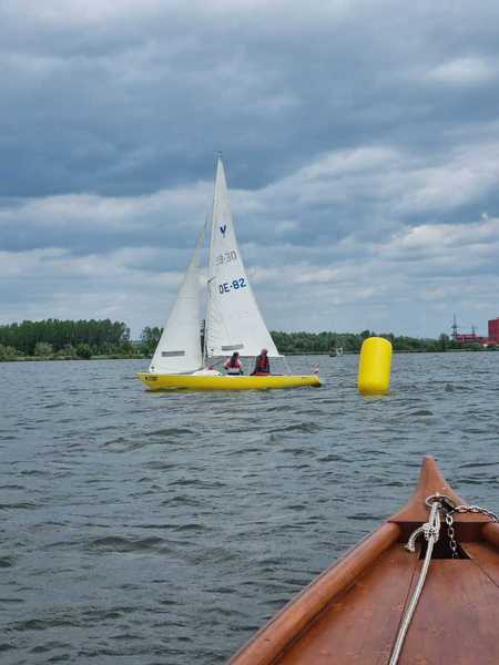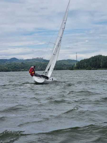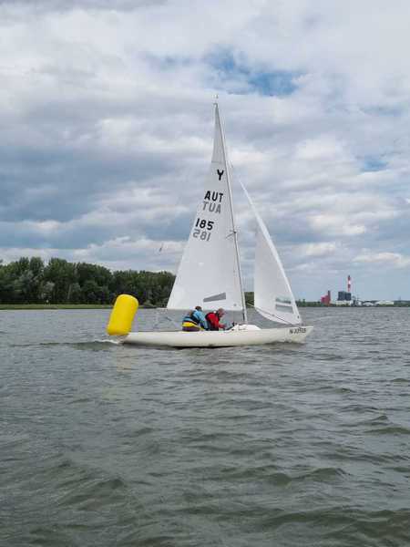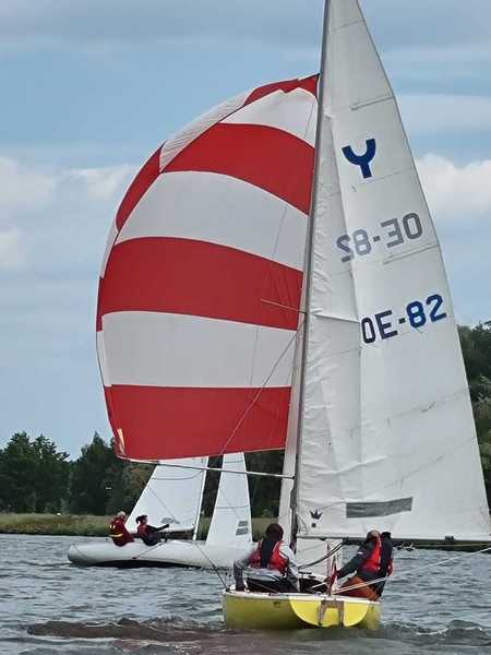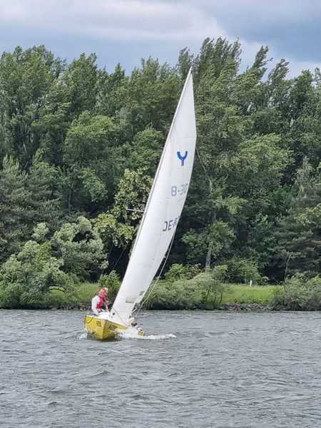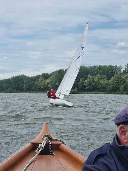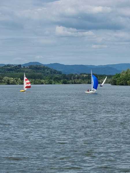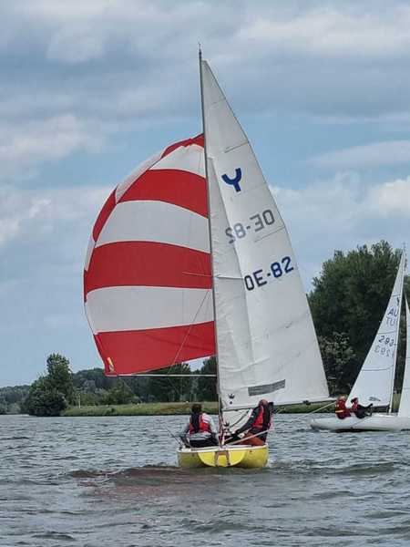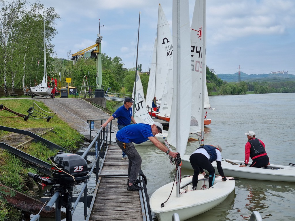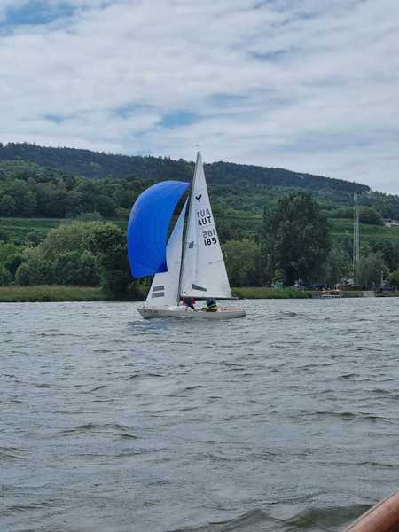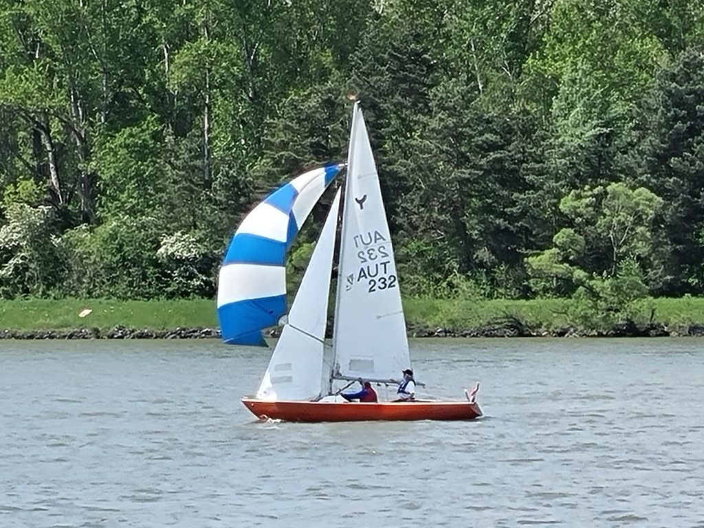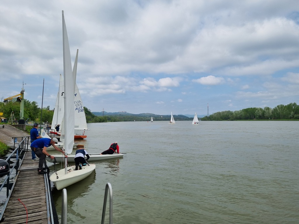 Nach 2 Jahren Regattapause bedingt durch Hochwasser der Donau 2013 sowie zu wenige Meldungen 2014 war es heuer wieder soweit. 11 Meldungen langten rechtzeitig vor Meldeschluss ein. Diese Regatta fand im Rahmen des NÖ- Donaupokales statt und die Wertung erfolgte nach Yardstick. Eine weitere Besonderheit an der Donau ist der Start mit einem Känguru-Start. Der Auftakt des Wochenendes begann bereits Freitagsabend mit dem traditionellen Heurigenbesuch. Das Wetter am Samstag brachte Sonnenschein und Temperaturen um 30 Grad Celsius, der Wind wehte mit ca. 1-2 Bft. aus NO drehend. Der Start zur ersten Wettfahrt erfolgte ca. 14:30 Uhr. Aufgrund der schwachen Windverhältnisse und der leichten Strömung war eine zweite Wettfahrt an diesem Tag nicht mehr möglich, Tagessieger wurde AUT 77 Roland Deissenberger mit Thomas Eisner. Bei dieser Regatta feierte der Yes St.Pölten am Samstagabend sein 50 Jähriges Clubbestehen. Ein reichhaltiges Buffet, div. Getränke und Livemusik sorgten bald für gute Stimmung. Es wurde ein gemütlicher Abend bei angenehmen Temperaturen auf der Clubterrasse. Das Wetter für den Sonntag war ähnlich wie Samstag, der Wind wehte mit 3-4 Bft. und in den Böen mit 5 Bft. aus SO drehend. Start zur 2. Wettfahrt um ca. 10:30 Uhr, am Sonntag konnte 3 Wettfahrten bei gleichbleibenden Windverhältnissen gesegelt werden. AUT 77 Roland Deissenberger mit Vorschoter Thomas Eisner verteidigte souverän am Sonntag seinen Platz und konnte den Gesamtsieg erlangen. Den 2.Platz erreichte Punktegleich mit dem Erstplatzierten Altmeister GER 4139 Heinrich Bösl/Josef Knapp. Der 3. Platz ging an AUT 6 R.Leitner/F.J. Schild.
